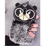 KC Lovely Cartoon Rabbit Furry Fluffy Warm Plush Bear Fur Hair with Big Spectacles Soft Bumper Silicone Back Cover for Oppo F11 Pro (Black)