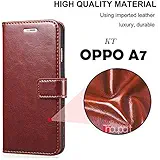 KT Oppo A7 Flip Cover Leather Flip Cover Wallet case Card Holder case with Inside Shock Proof TPU Back Case Cover - Brown